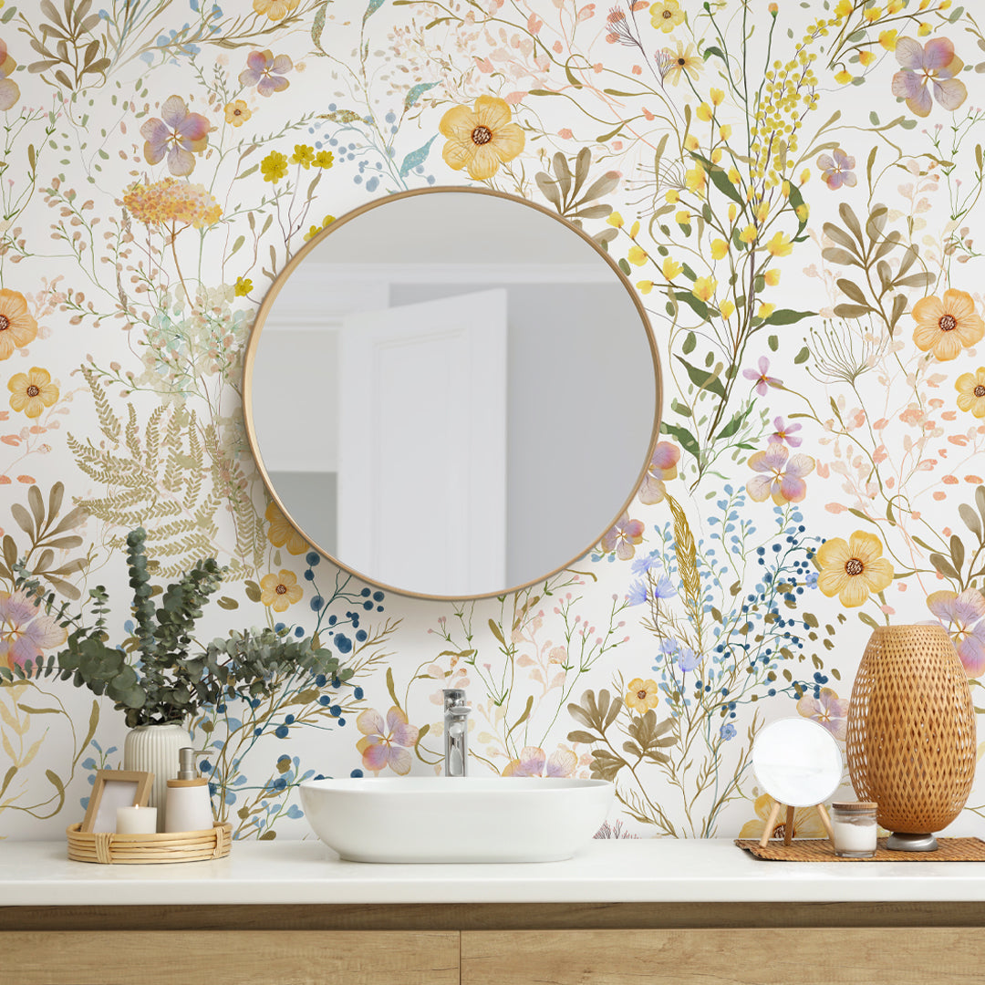 Bathrooms: Infuse your bathroom with vibrant energy using the Yellow Wild Floral Boho Self Adhesive Wallpaper. The cheerful yellow blooms and bohemian-inspired design create a lively and refreshing atmosphere.