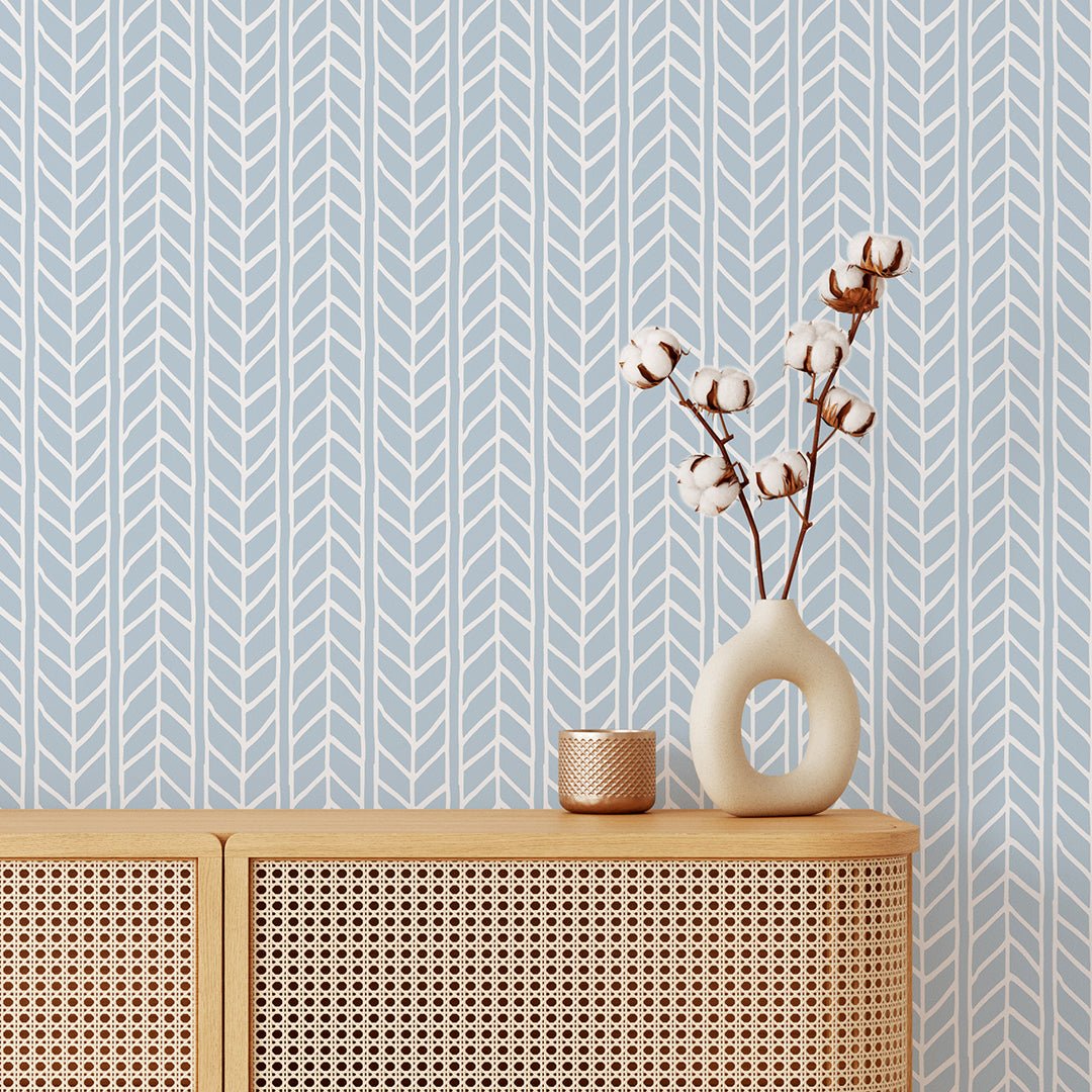 Geometric Blue Chevron Wallpaper: This captivating wallpaper features a bold chevron pattern in shades of blue, creating a dynamic and modern focal point in any room.