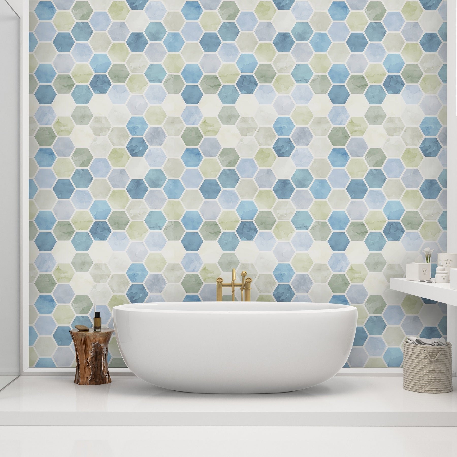 Bring a touch of nature's beauty into your bathroom with our Self Adhesive Watercolor Hexagon Honeycomb Removable Wallpaper. The delicate watercolor hexagon pattern exudes a sense of whimsy and charm, creating a delightful and relaxing atmosphere.