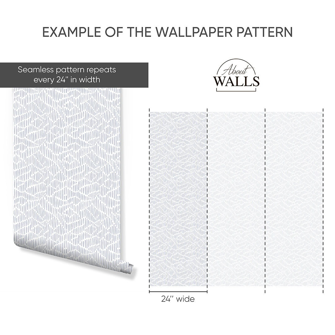 - A mini version of what a whole sheet of 24”x72” wallpaper would look like to give you a better idea of the full pattern of the design.