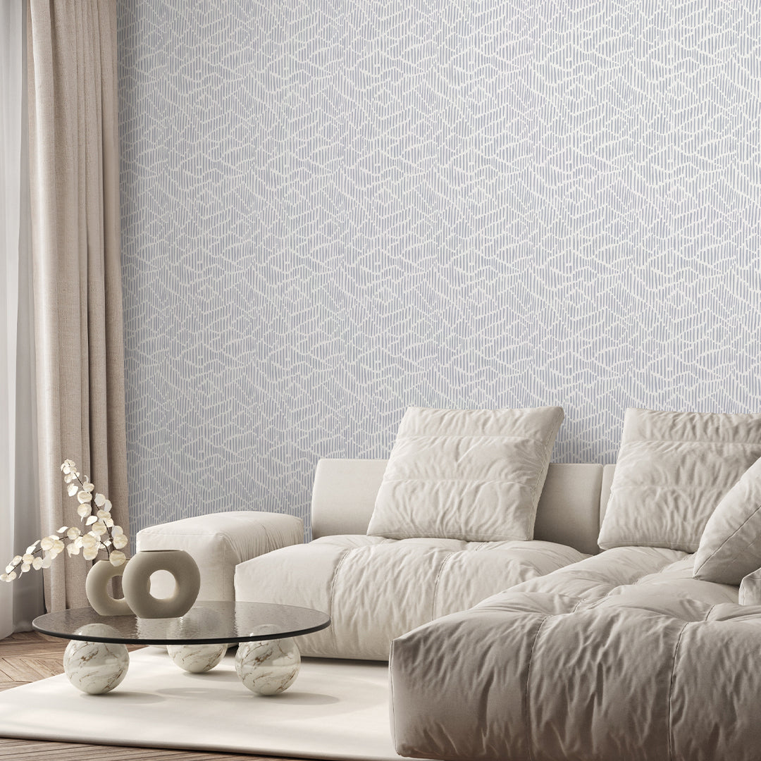 Self Adhesive Temporary Removable Vinyl Wallpaper Or Polyester Peel and Stick Wallpaper Minimalist Light Blue Abstract Brushstroke Ocean Wave Art. Abstract Line Art Ocean Flow Pattern Fabric Wallcovering.