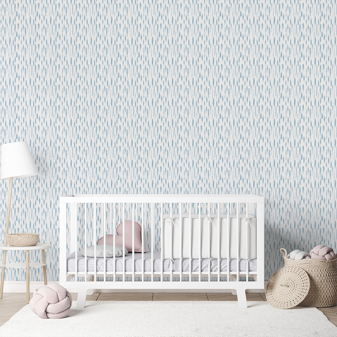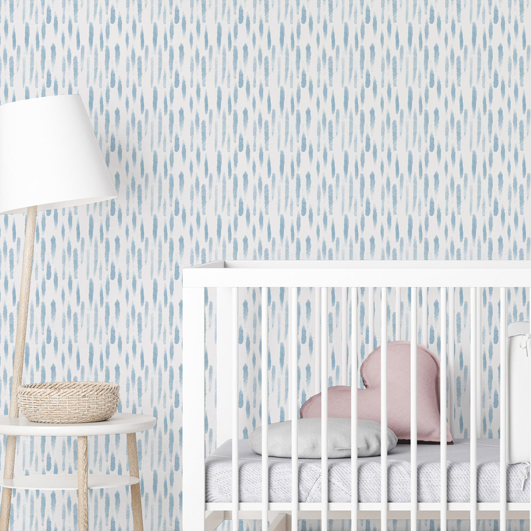 Self Adhesive Temporary Removable Vinyl Wallpaper Or Polyester Peel and Stick Wallpaper Minimalist Light Blue Abstract Brushstroke on White Background. Scandinavian Japandi Raindrop Pattern Fabric Wallcovering.