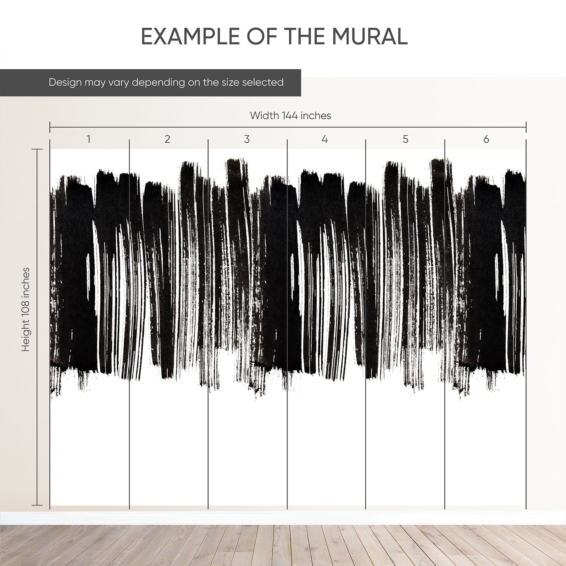 Abstract black and white brushstroke Wall Murals for a bold modern statement wall. The design features oversized vertical ink stripes with textured, painterly edges and a slightly distressed look that adds depth without feeling busy. Perfect for a minimalist living room, office, studio, hallway, entryway, or modern farmhouse interior. Pairs beautifully with wood, metal, neutral furniture, and clean lines. Removable peel and stick, temporary, self-adhesive, traditional unpasted wallpaper or pre-pasted wallpaper and Wall Murals - all materials are eco-friendly. Made in the USA. High-quality removable material, this wallpaper is easy to apply and reposition, making it suitable for renters and home decorators and designers.