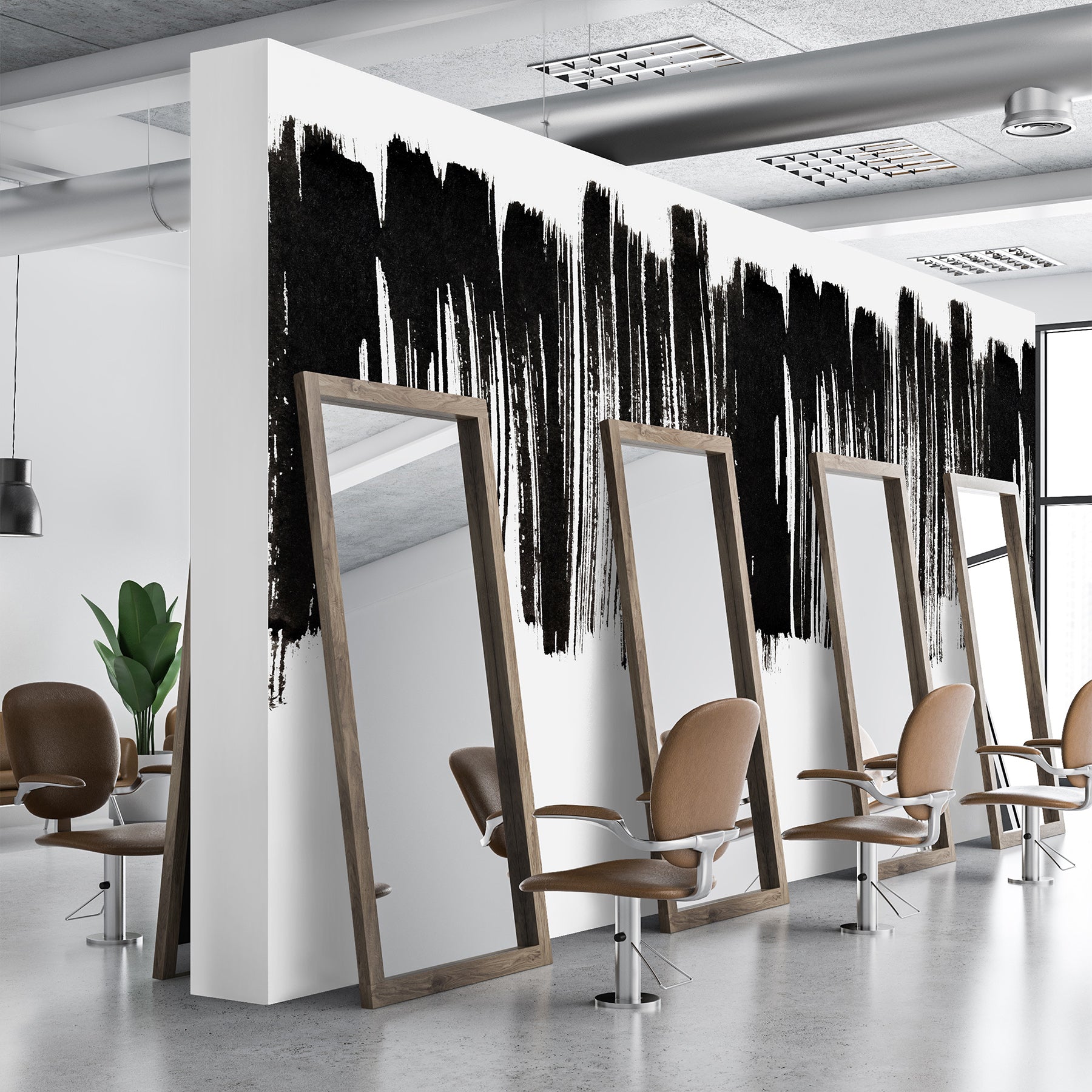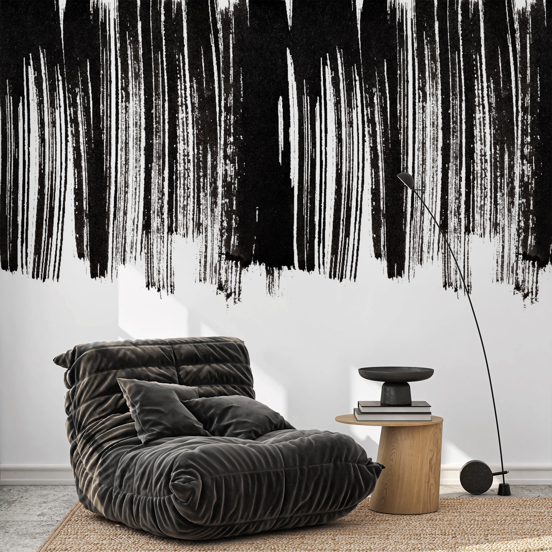 Black White Brushstroke Wall Mural AM189