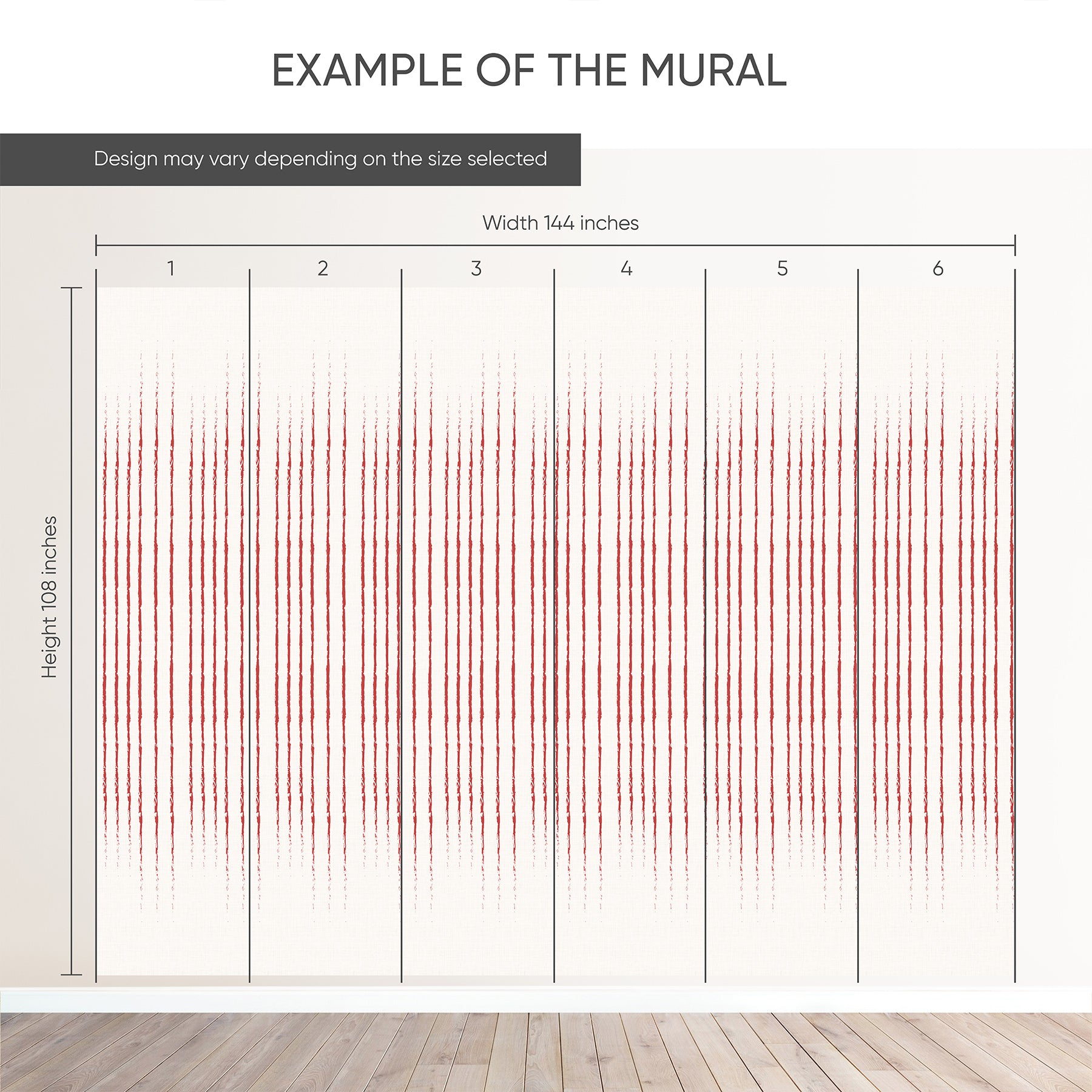 Red vertical stripe mural on linen texture. Japandi Scandinavian accent wall for bedroom, living room or office. Removable peel and stick, temporary, self-adhesive, traditional unpasted wallpaper or pre-pasted wallpaper and Wall Murals - all materials are eco-friendly. Made in the USA. High-quality removable material, this wallpaper is easy to apply and reposition, making it suitable for renters and home decorators and designers.