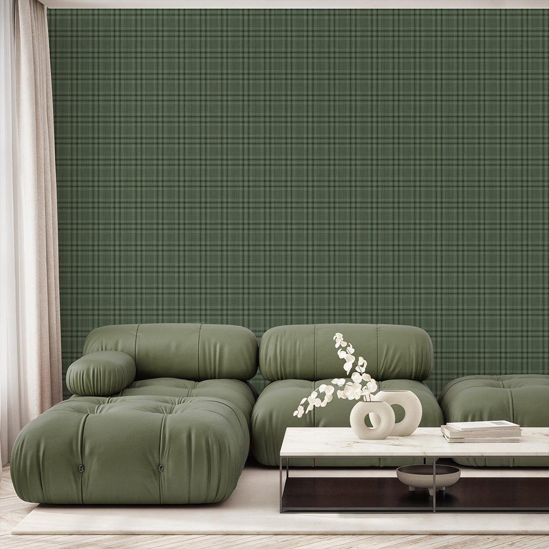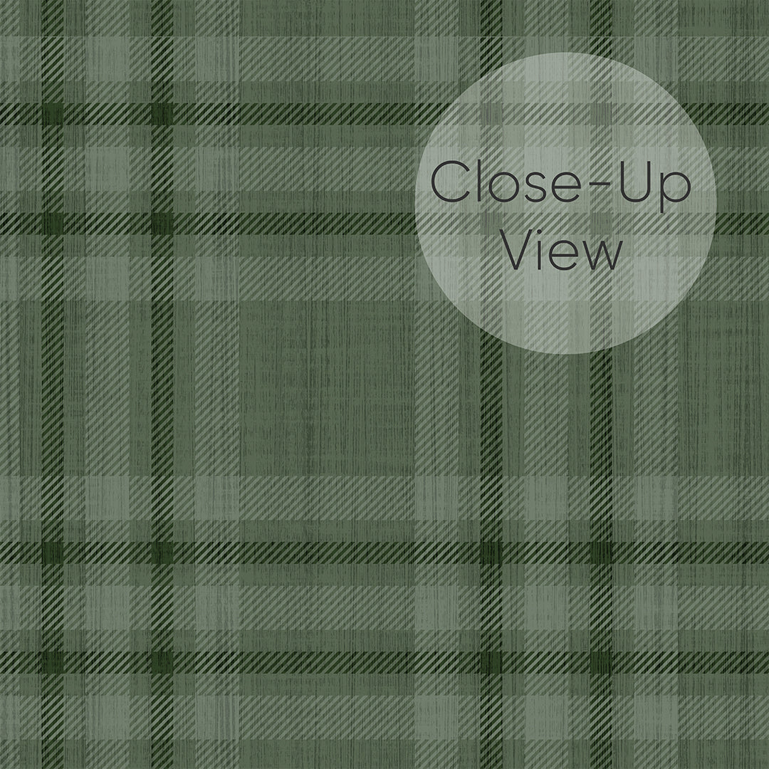Self Adhesive Temporary Removable Vinyl Wallpaper Or Polyester Fabric Peel and Stick Wallpaper with Country Style Plaid in Dark Green Color. Gingham Farmhouse Style Check Pattern Fabric Wallcovering.