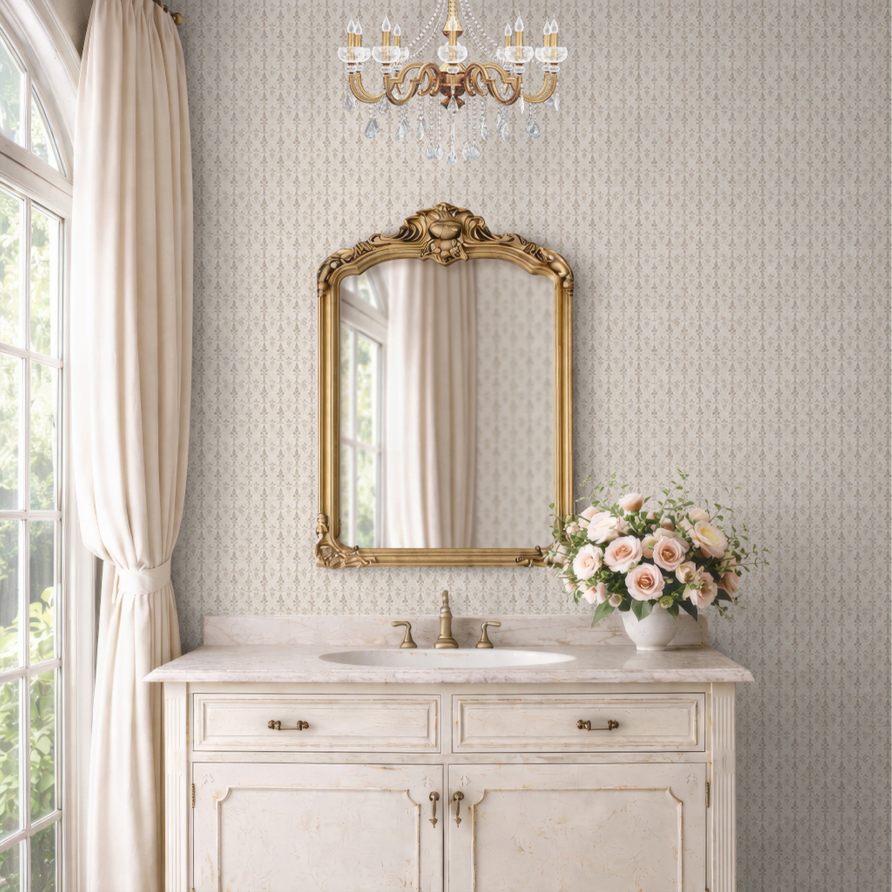 Beige Damask Wallpaper L092