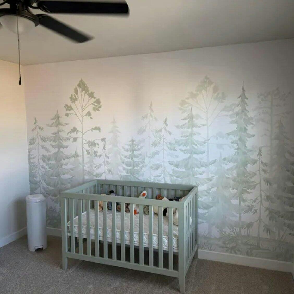 Soft Green Watercolor Pine Trees Wall Mural WM096