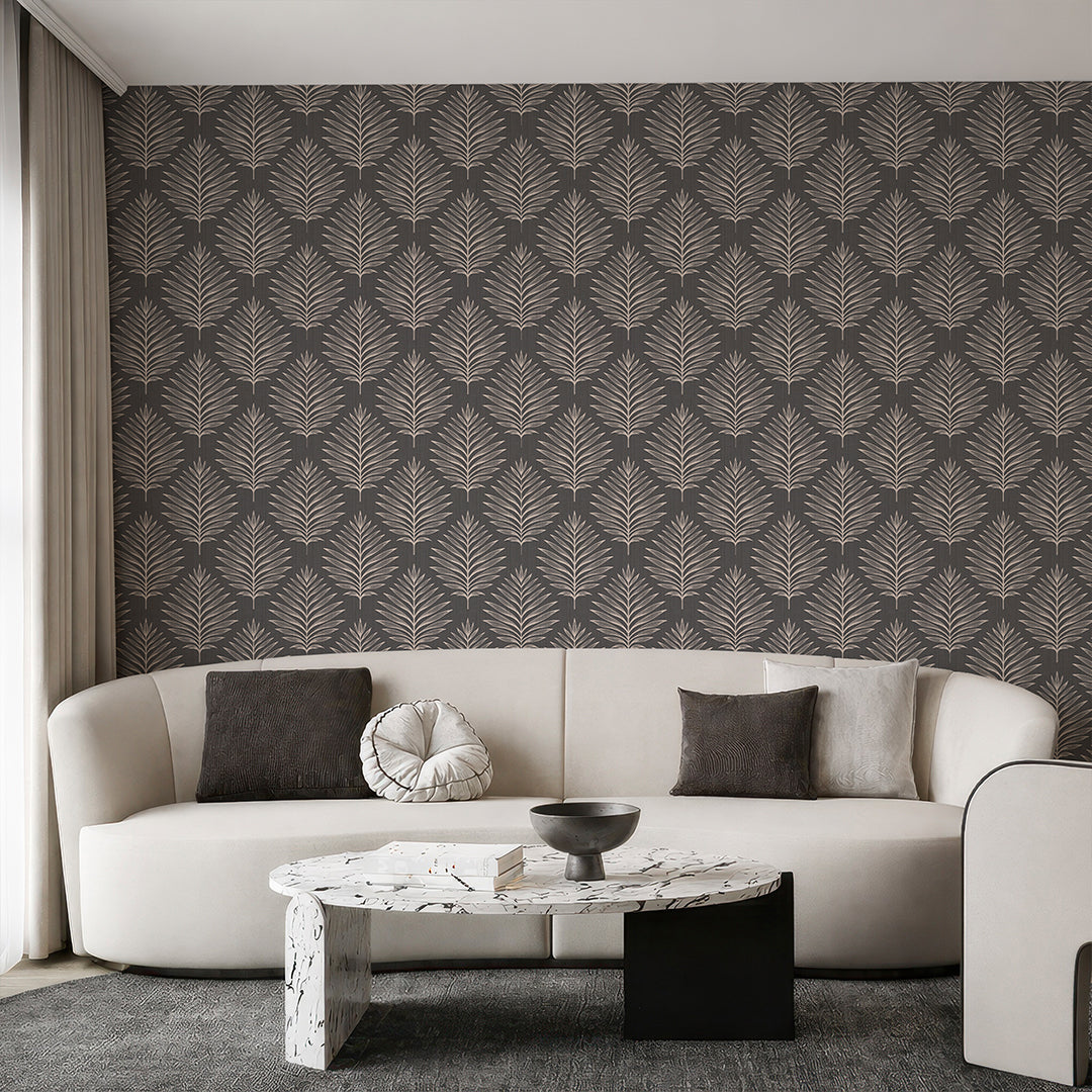Refresh your space with this neutral palm leaf wall mural featuring beige fronds on a dark gray background in a seamless repeat. Removable peel and stick, temporary, self-adhesive, traditional unpasted wallpaper or pre-pasted wallpaper and Wall Murals - all materials are eco-friendly. Made in the USA. High-quality removable material, this wallpaper is easy to apply and reposition, making it suitable for renters and home decorators and designers.