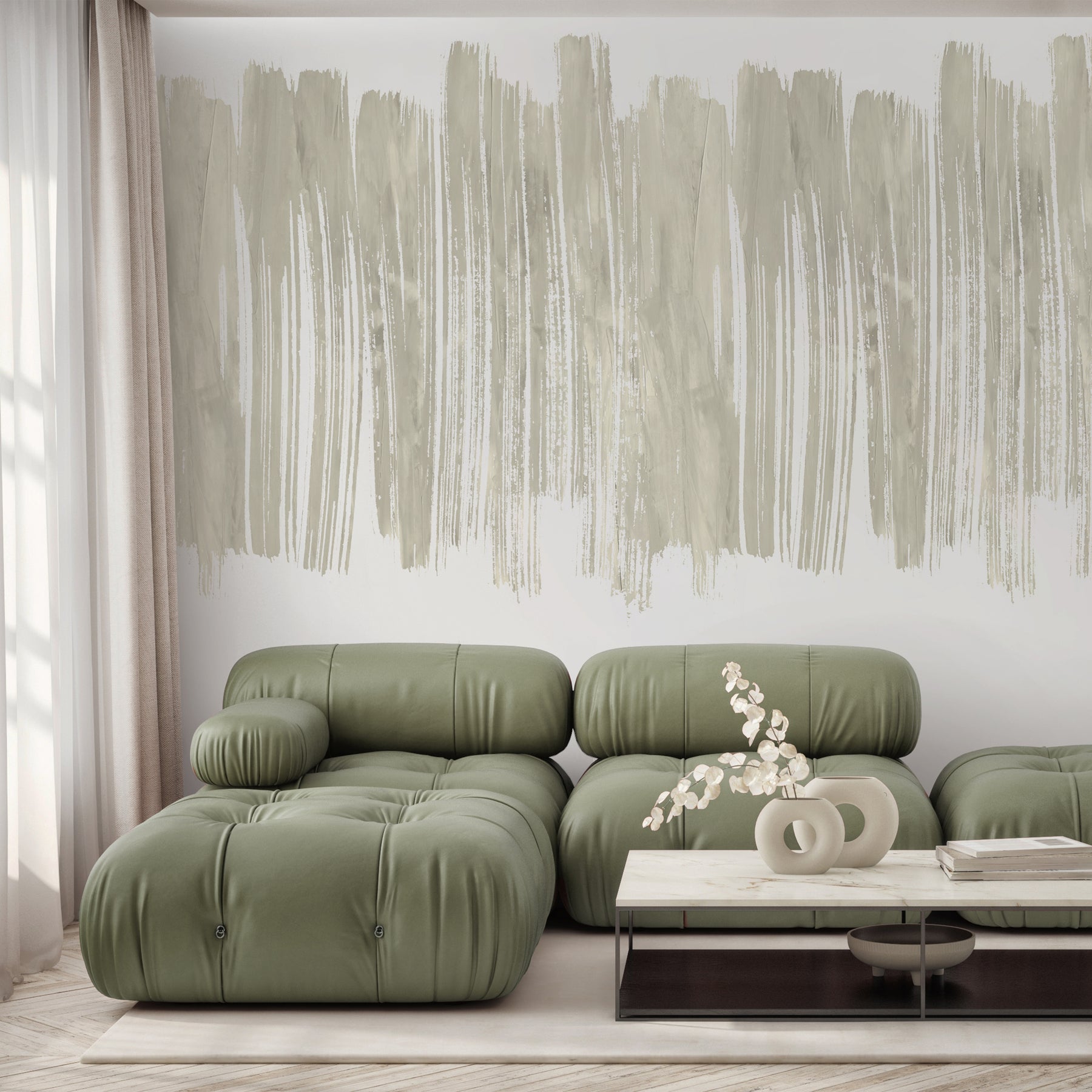Light Greige Green Brushstroke Wall Mural AM192