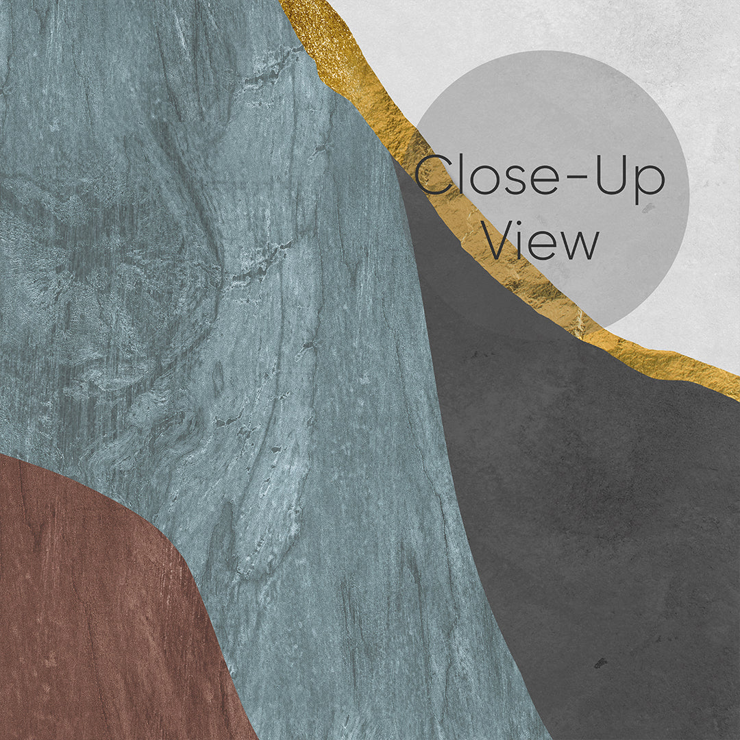 Peel and Stick Temporary Removable Vinyl Wallpaper, Traditional Unpasted Or Polyester Fabric Wallpaper with Brown Blue Green Gray Abstract Pattern with Gold Effect Lines Modern Plaster Wood Effect Design.