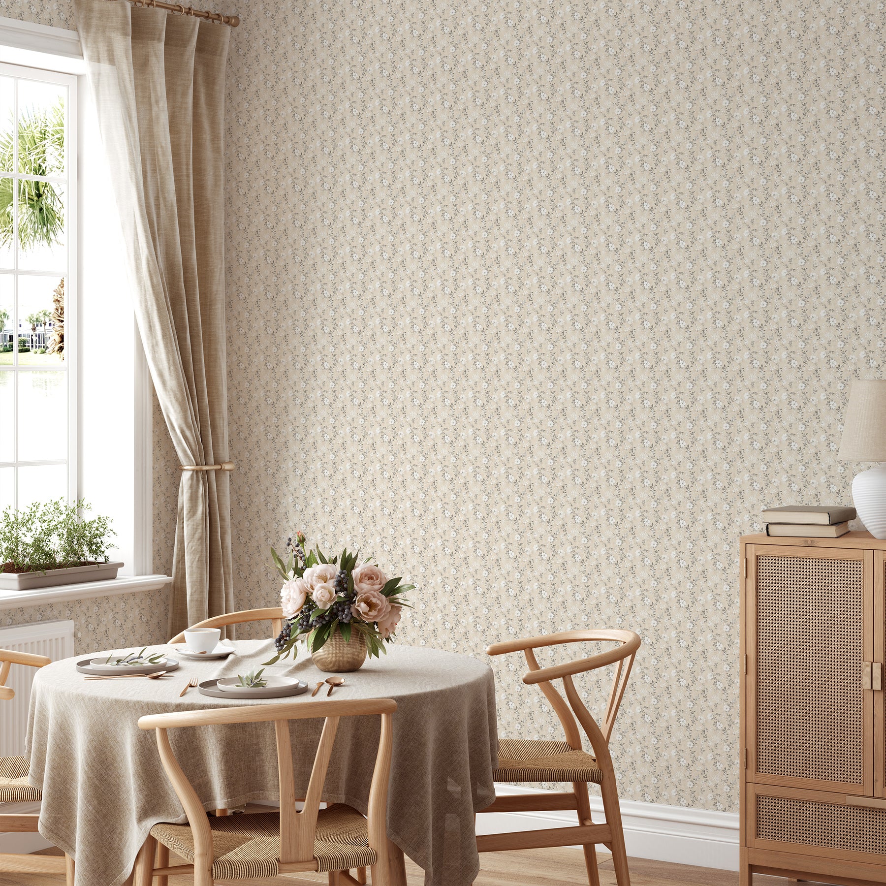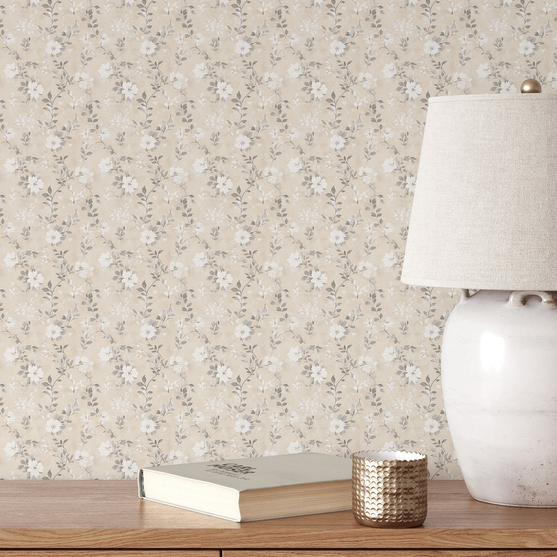 Beige Wildflowers Wallpaper L077