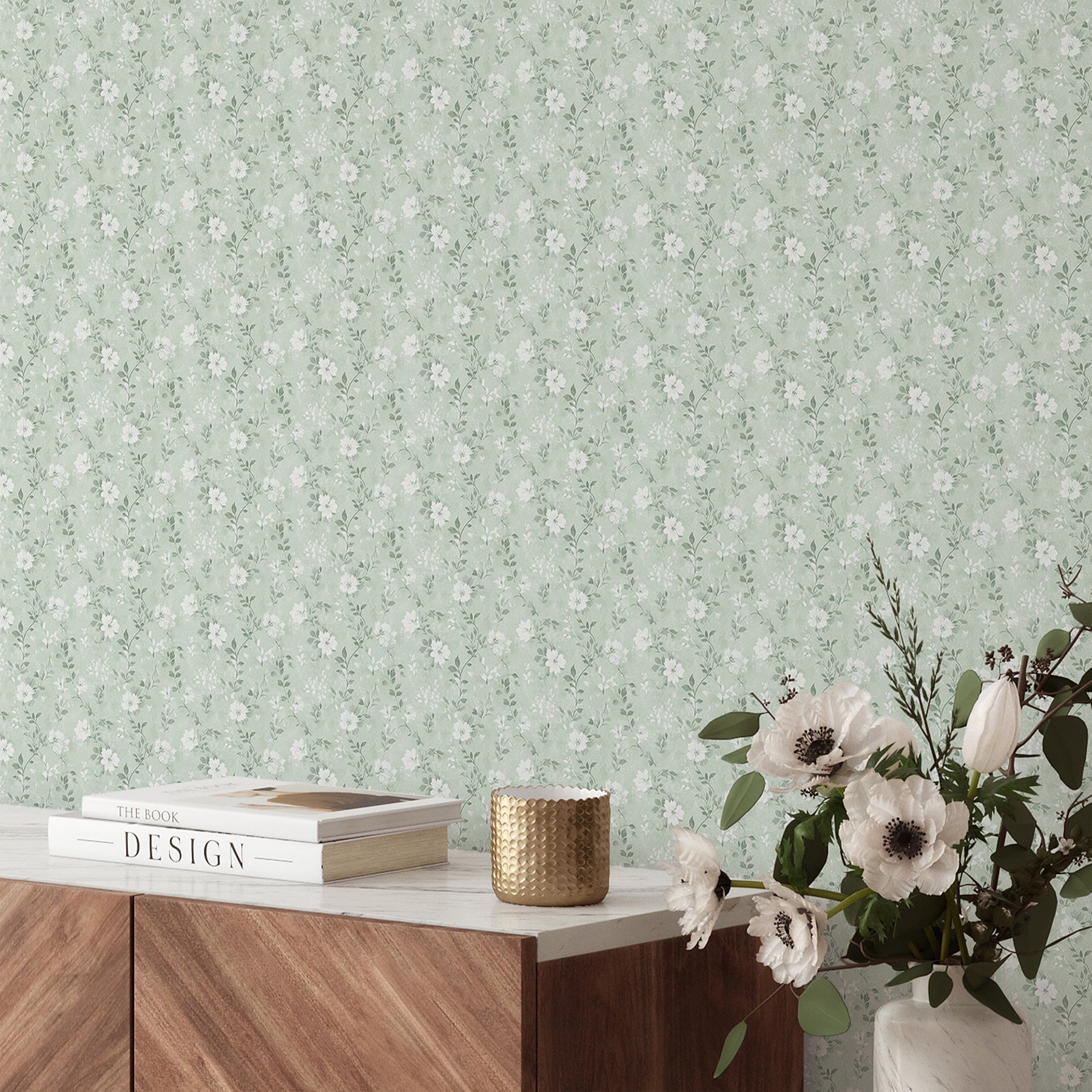 Soft Mint Green Wildflowers Wallpaper L079